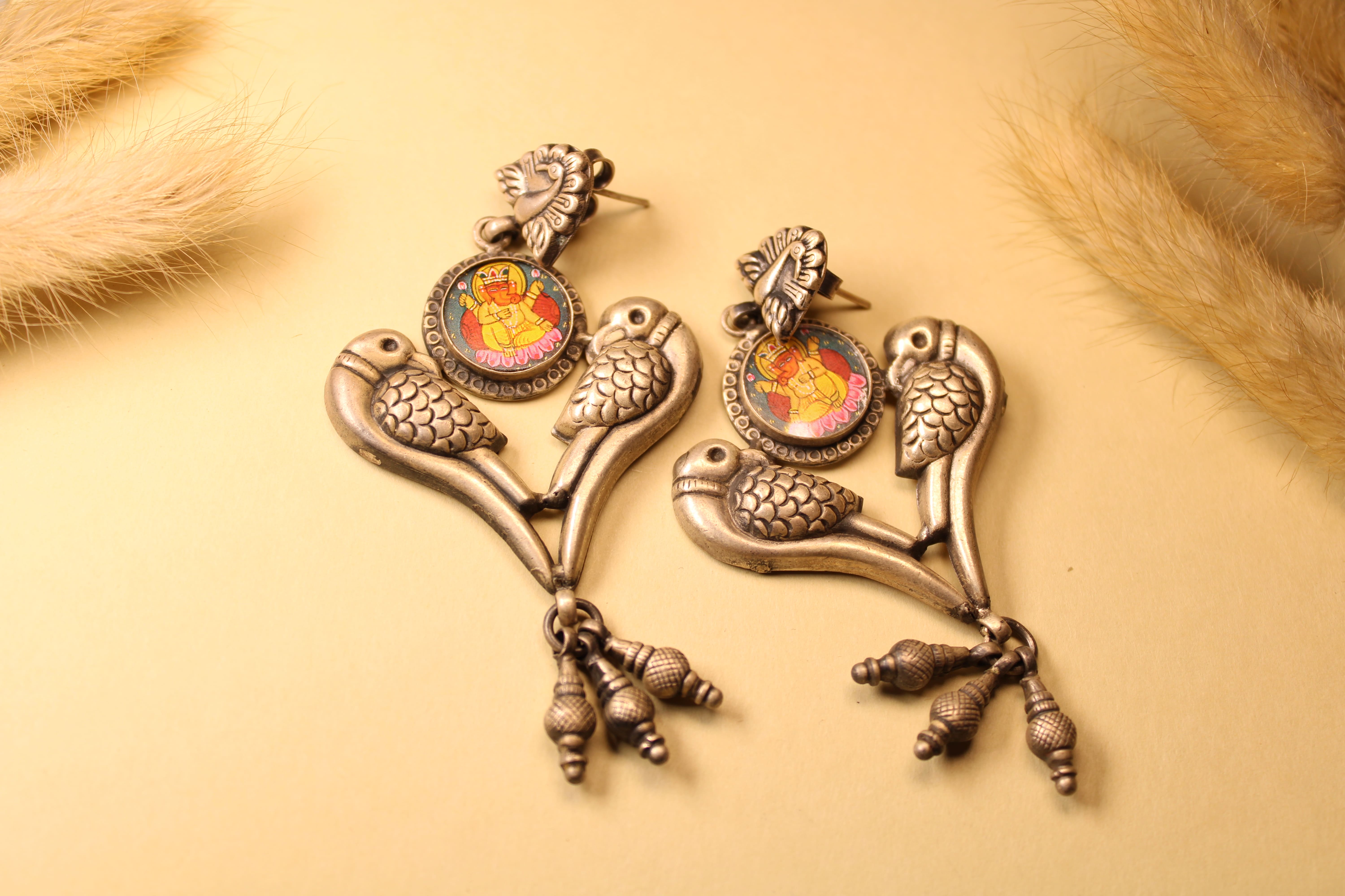 Divine Parrot Ganesha Drop Earrings